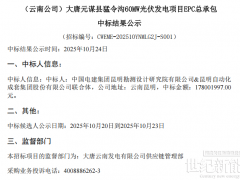 2.97元/W!云南60MW光伏发电项目EPC总承包中标结果公示