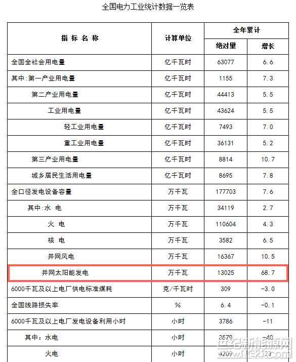 发电量为13025万千瓦,在所有发电系统中增长最快,增长了68.7%。