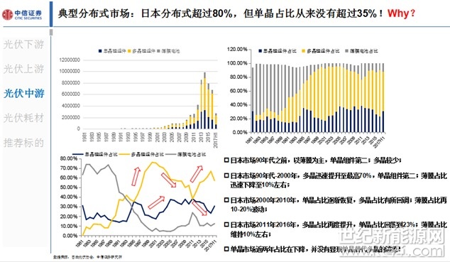 针对“分布式中单晶占比多”的说法,弓永峰通过调研数据指出,国外屋顶分布式电站大多是高效多晶组件,占比约80%,并非单晶组件。日本分布式超过80%,但单晶占比从来没有超过35%。