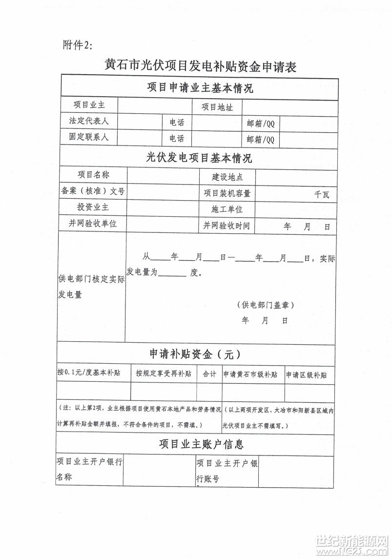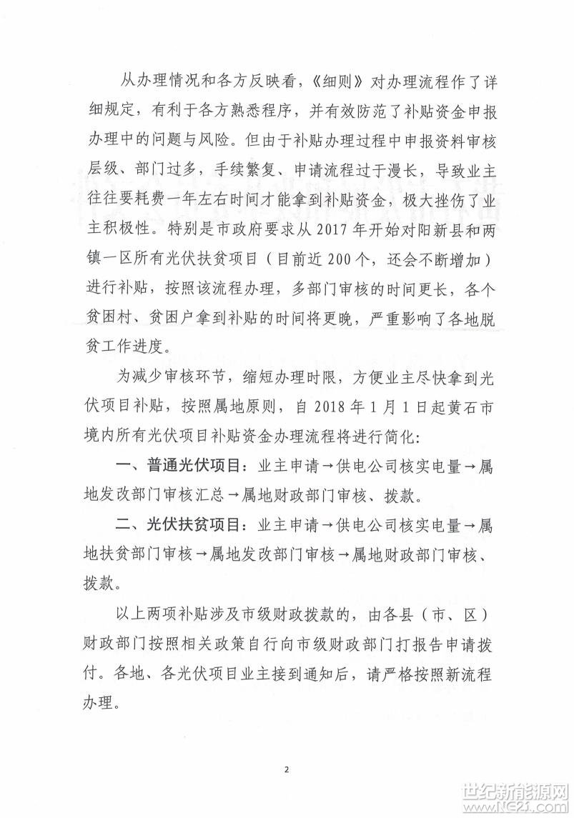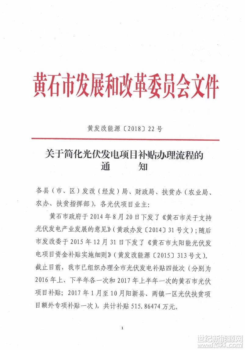 黄石市发改委关于简化光伏发电项目补贴办理流程的通知
