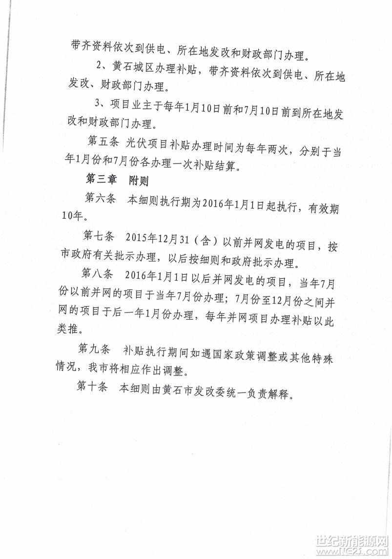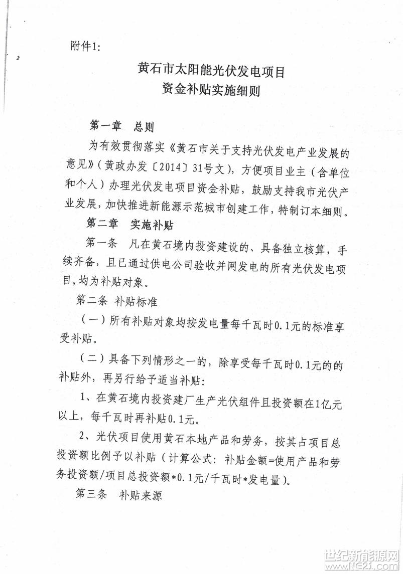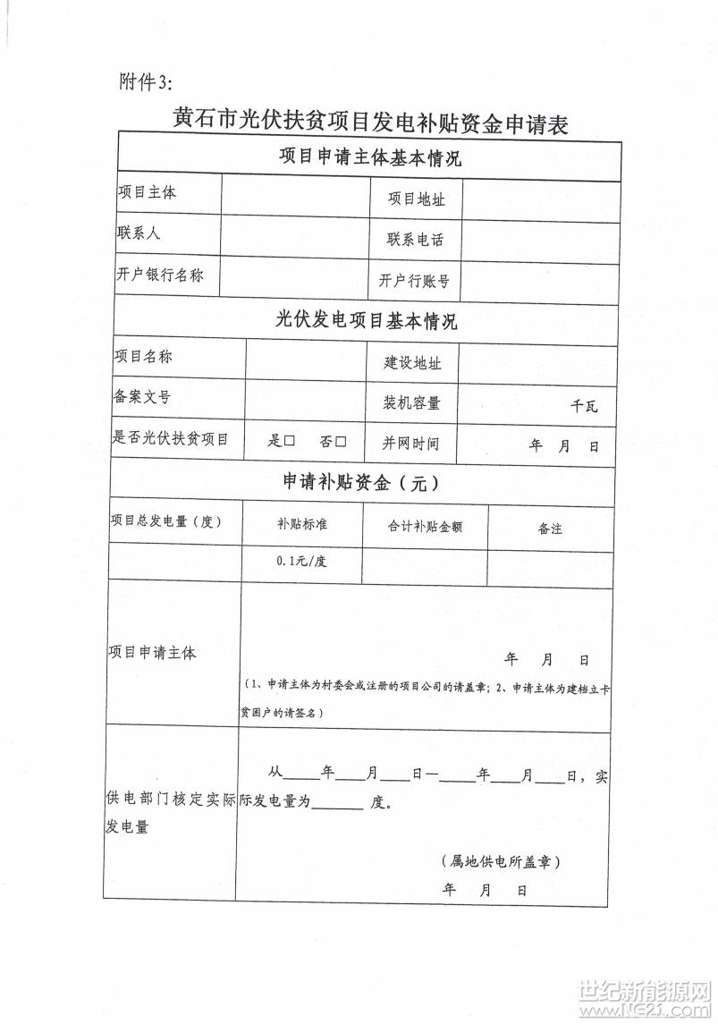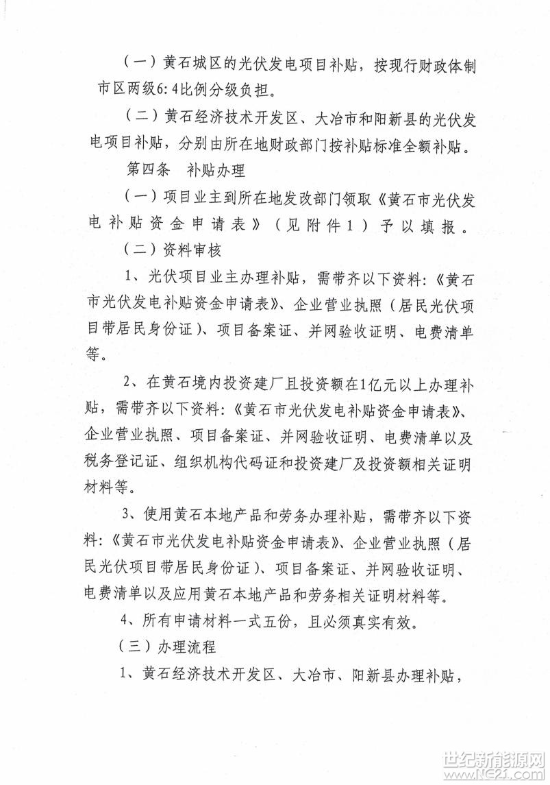 黄石市发改委关于简化光伏发电项目补贴办理流程的通知