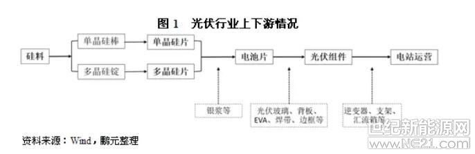 光伏产业链主要包括硅料、硅片、电池片、光伏组件、电站运营等环节,其中上游为硅料、硅片环节,中游为电池片、光伏组件环节,下游为电站运营环节。硅料行业的集中度较高,为技术密集型行业;硅片的技术含量略低于硅料,主要依靠设备,属于资本密集型,行业的集中度亦较高;电池片技术含量较高,但行业集中度不高;光伏组件作为电站的直接上游,集中度低,竞争激烈,整体议价能力不高,受需求波动影响明显。