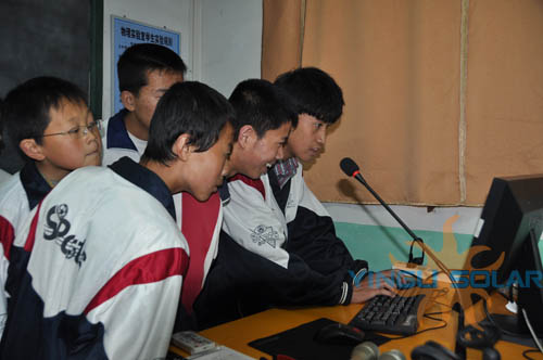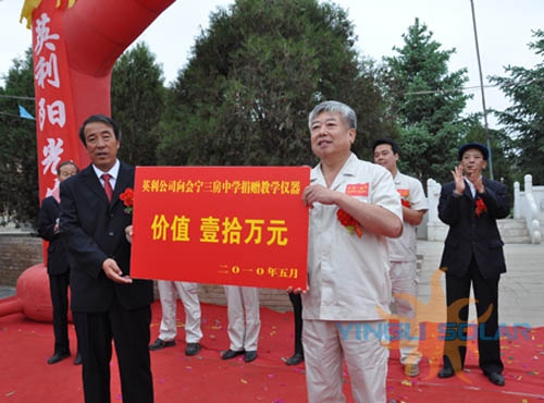 谈到此次捐赠的初衷时,杨建忠在捐赠仪式上这样说:“依托会宁优越的光照资源,利用我们优良的太阳能发电技术设备,三房吴中学光伏电站自2008年正式运行以来,运行状态良好,累计为三房吴中学及周边提供6万多度环保电能。充足的清洁电力需要与完善的现代化教学设备配套,只有这样才能使每一度宝贵的太阳能电力得到充分应用。英利人希望用爱心温暖西部的贫困学子,此次捐赠不仅让很多家庭贫困但品学兼优的学生得到了资助,同时也完善了学校的硬件设施,希望这些设备成为三房吴中学开展信息技术教育的有用工具,成为广大学生接受新事物、学习新技术的重要窗口。”