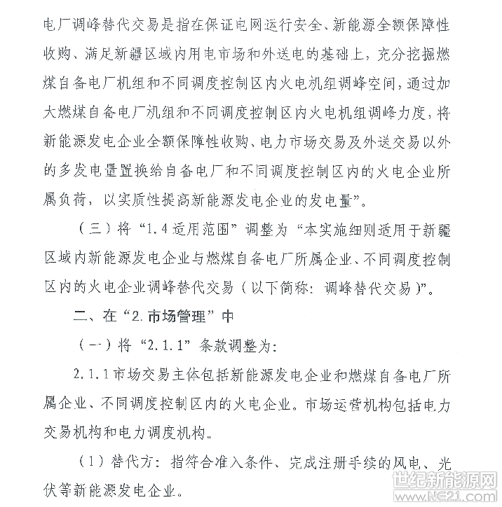 相关阅读:《新疆区域新能源发电企业与燃煤 自备电厂调峰替代交易实施细则(暂行)》/data/attachment/images/file/20181127/2d7d25f7b22dd95f97fdc48013d0d819.docx
