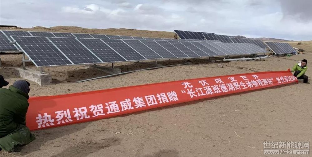 继2018年为“青藏绿色驿站”捐赠离网光伏发电系统,开创了世界屋脊光伏电站捐赠先河,2019年,在十一届全国政协常委、全国人大代表、通威集团董事局刘汉元主席的高度重视和亲自指挥下,通威集团再度挺进青藏无人区,捐赠十余套离网光伏发电系统,为长江源班德湖野生动物观测站提供清洁电力支持,为推动长江源生态环境保护工作再次贡献力量。经过连续近十天的紧张奋战,4月10日,观测站光伏系统调试成功,通威绿色能源将再度点亮世界屋脊!