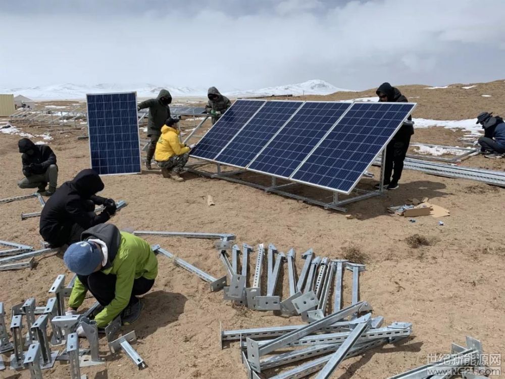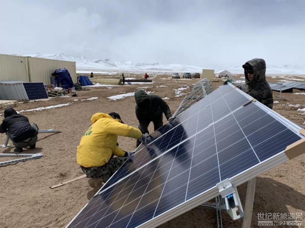 今日,记者连线了本次项目建设的主要参与者。通威新能源工程师赵兵感慨地表示:“在通威经历了很多次光伏电站建设,但这是我第一次参与高寒、高海拔地区的电站建设工作。在志愿者的配合下,能在短短1天完成安装、调试工作,让观测站的志愿者们用上电,感觉很不容易!”赵兵介绍,参与电站建设的工作人员每天要穿越40公里的无人区到达观测站实施建设工作,虽然当地烈日灼目,但白天的气温仍然在零下10多度,大风夹杂着雪花,复杂的天气给工作人员的建设工作带来了很大挑战。“在建设过程中,每个人脸上都被晒成了‘高原红’,但大家仍然与寒冷抗争。通过自己的双手为无人区输送通威清洁电力,不仅是对我们高原地区电站建设工作的考验和磨砺,也让我深深感受到了‘光伏改变世界’的使命感。”