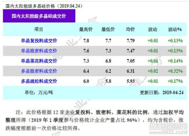 国内多晶硅在产企业由2018年初的24家减少至目前的16家,停产检修企业包括瑞能、云芯、恒星、东明、天宏、赛维、南玻、合晶8家。上周3家多晶硅企业检修,其中一家于本周如期恢复正常运行。5月份计划检修企业包括3家万吨级企业,影响全月产量大约6000-7000吨。国内各企业生产运行情况及检修计划,为4-5月份原本疲软的市场增加了一定活力,使得在终端需求实际爆发前,多晶硅价格能够止跌于历史低点,并维持缓升走势。
