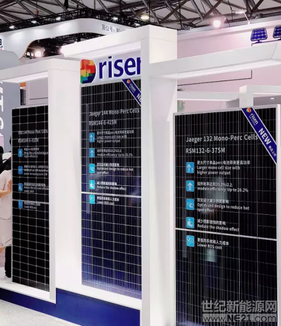 本次展会东方日升推出的新品主要分两个部分:第一部分为量产型产品——Jaeger系列组件产品以及异质结系列组件产品。尺寸为158.75,其单晶功率可达到400到405w。