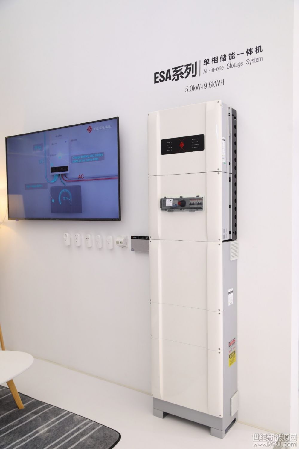 据了解,ESA系列单相储能一体机是固德威此次展会重点推出的一个系列产品,旨在提供智能便捷的一体式光储解决方案。该系列产品以先进的模块化设计,集成单相储能逆变器、开关盒、电池及电池柜等重要器件,安装使用极为便捷。“这种一体机可以有效地减少人工成本和时间成本,这系列机器对人工费用较高的地区还是比较有引力的。”孔沫晗介绍。
