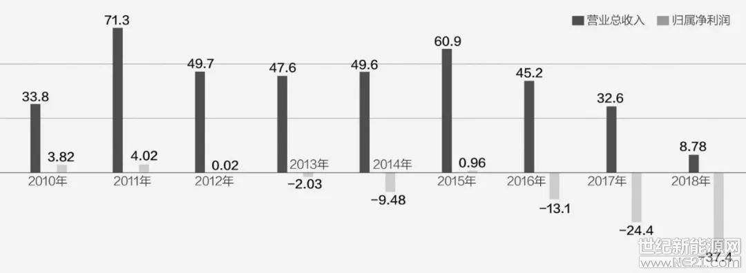 ▲海润光伏历年业绩 单位:亿元(来源:每日经济新闻)