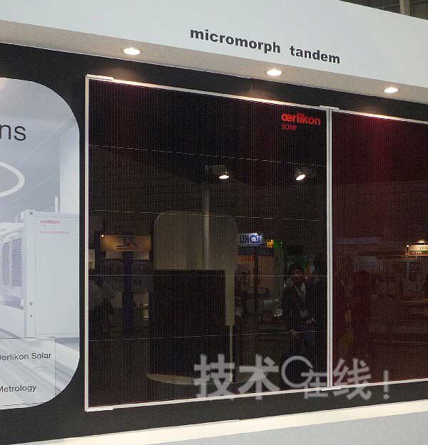 瑞士欧瑞康在PVJapan上展示了转换效率为9.7%的薄膜硅太阳能电池。模块尺寸为1.1m×1.3m。如果导入最新的整体解决方案,转换效率可达到10.1%。将来,该公司将力争在2015~2016年使转换效率达到14%。