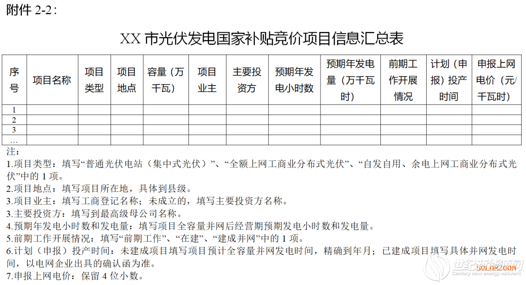 2-2.光伏发电国家补贴竞价项目信息汇总表