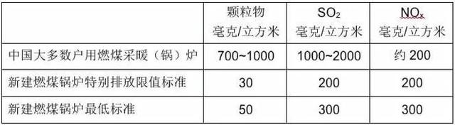 后来我查阅了一些中国专家的文章,结论更悲观,中国土暖气的燃烧烟气中的颗粒物达1000毫克/立方米左右,远远高于中国燃煤锅炉的烟气排放上限(见下图)。