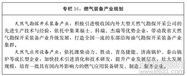 1.燃气装备。进一步完善天然气装备产业链,重点发展天然气勘探开采装备、非常规油气开采设备、油气工业环保设备及终端燃气取暖设备等高端新产品的研发和产业化进展。依托中集莱福士、科瑞、杰瑞等骨干企业,发展壮大一批具有国际影响力和竞争力的油气勘探、钻采装备企业。在原有燃气设备产业基础上,通过引进、消化、吸收国内外核心关键技术,积极培育壮大中小型燃气轮机、LNG装备制造、燃气锅炉、燃气壁挂炉等燃气装备研发制造企业,提升产业发展层次,大力推动品牌化战略发展。借鉴国外油气装备制造业的发展经验,改变只生产销售产品的传统业务模式,大力发展产品研发、制造、销售、服务综合一体化业务,拓宽业务领域,提升行业竞争力。