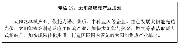 太阳能集热产业。依托济南、德州、临沂、泰安、潍坊、枣庄等市太阳能产业优势,发挥力诺、桑乐等企业的引领作用,提升太阳能光热利用水平和产品的知名度。开展“太阳能+”清洁取暖技术系统研究与工程推广应用,积极促进太阳能与其他能源融合发展,提升产业智慧化水平和转换效率,进一步巩固和提升我省太阳能集热产业在全国的龙头地位。
