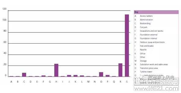 据英国2014年海上风电安全事故统计显示,海上事故占比最大,而其中小型船只(例如运维船)上发生的安全事故又遥遥领先与其它海上安全事故(如图中柱形S),值得业内高度重视。