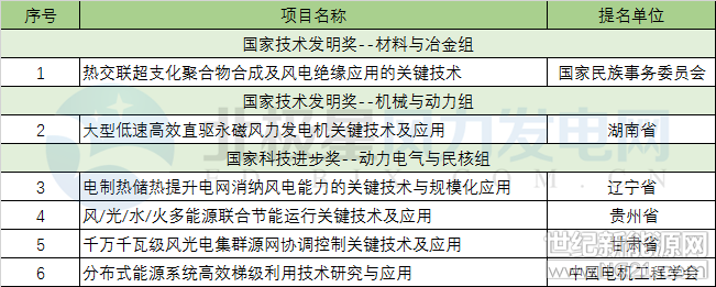 据北极星风力发电网不完全统计,在国家技术发明奖、国家科学技术进步奖项目中,共包含有6项风电以及风电相关项目,以下为获奖项目清单: