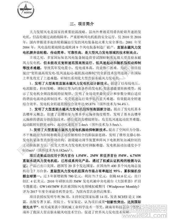 大型低速高效直驱永磁风力发电机关键技术及应用项目简介: