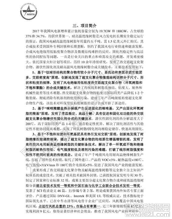 热交联超支化聚合物合成及风电绝缘应用的关键技术项目简介:
