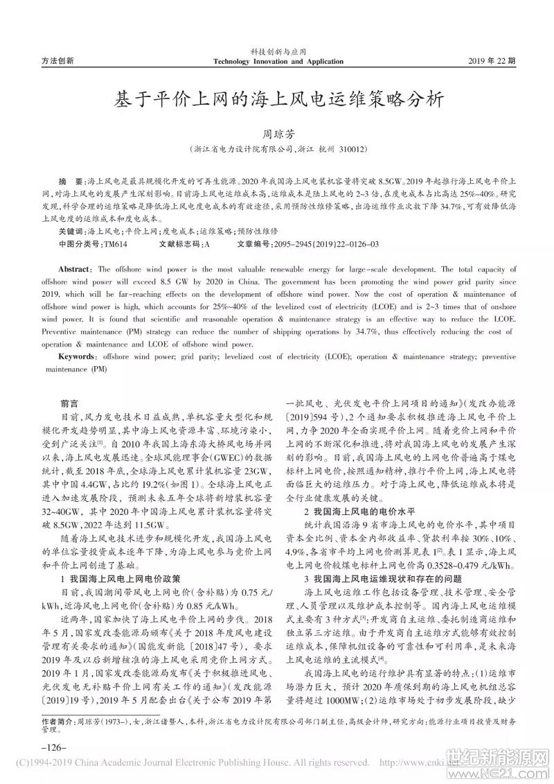 基于平价上网的海上风电运维策略分析