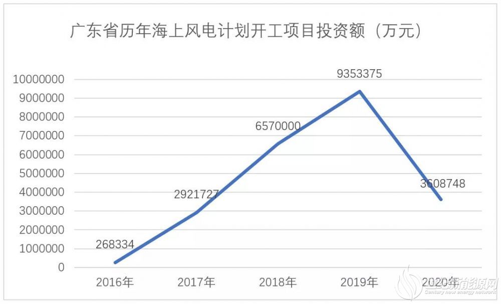 据《广东省2020年重点建设项目》显示,2020年计划新开工的海上风电项目仅3个,项目总容量180万千瓦,总投资为360.9亿。而就在一年前,广东省计划开工的海上风电项目高达10个,总容量为477.8万千瓦,总投资额高达935.3亿元。无论数量还是容量皆数倍于今年。