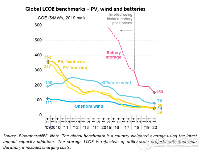 2019年太阳能光伏发电和陆上风能是目前全球至少三分之二人口的最便宜的新建发电来源。其中,在各类发电技术中光伏发电成本最低的国家包括:印度(33美元/兆瓦时)、中国(38美元/兆瓦时)、澳大利亚(39美元/兆瓦时)、南非(50美元/兆瓦时)。