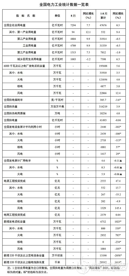 9月18日,国家能源局发布1-8月份全国电力工业统计数据。1-8月全国新增并网风电装机1004万千瓦,较去年同比减少105万千瓦。