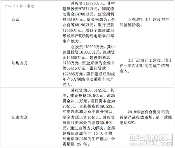 15家企业新建纯电动乘用车项目进展情况