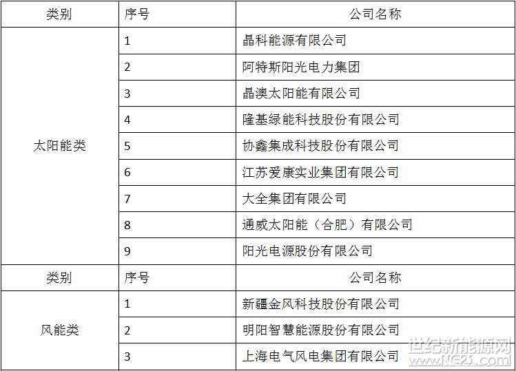2017中国新能源国际领跑者名单(第一批)(非贸易类)