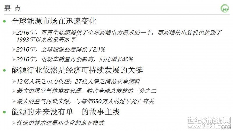 现在,我想总结一下《能源技术展望2017》报告的几个主要结论: