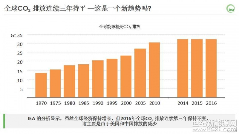 2016年,世界上最大的两个能源消费国和碳排放国-美国和中国的 CO2排放都在降低,欧洲则保持平稳,这抵消了其他大部分国家的增长。