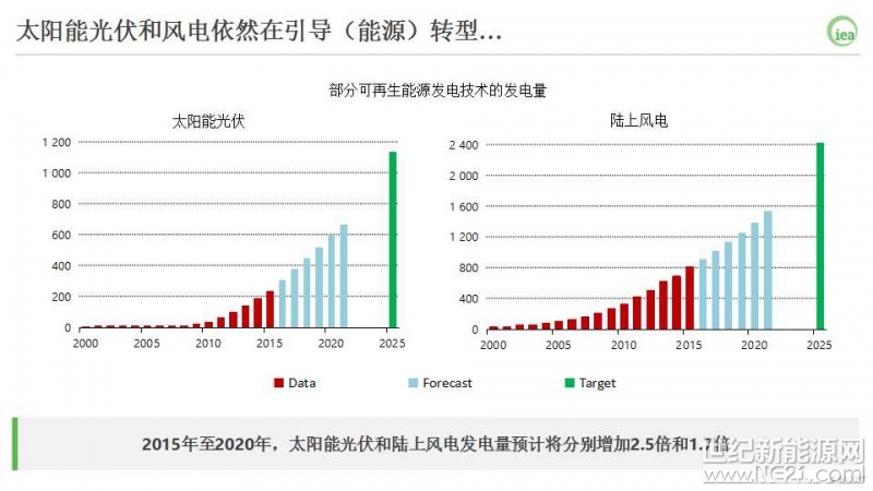 把这些趋势进一步延伸至2025年,国际能源署认为我们正处于实现2DS情景目标的轨迹上,这在发电量上可以得到体现。