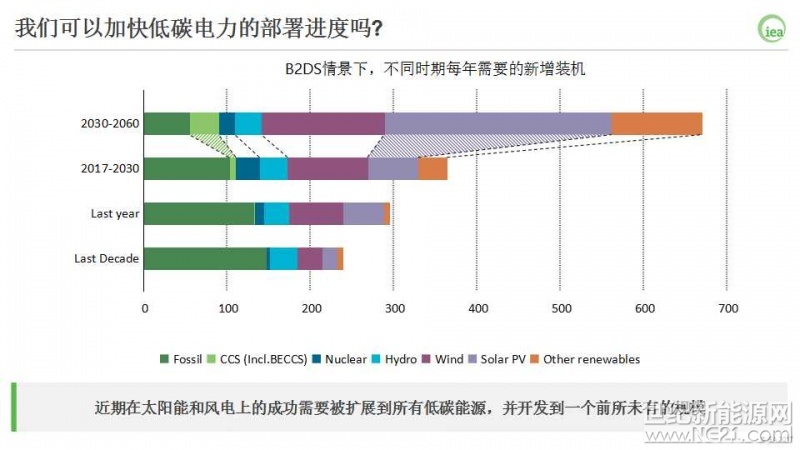 在2DS和B2DS情景中,需要低碳电力技术的快速发展,而且大部分技术需要的增速是前所未有的。