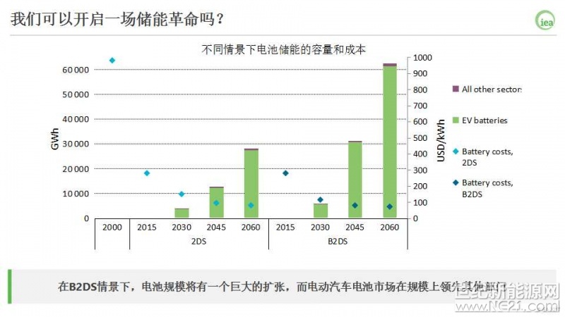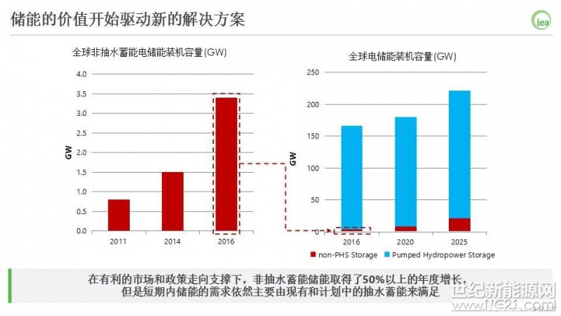 在2DS情景中,储能在2025年要累计达到2100万千瓦,因此还需要进一步的政策行动。