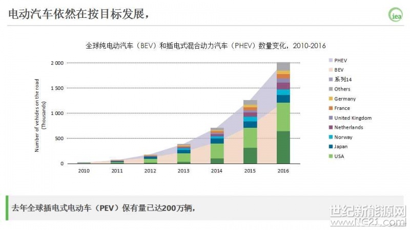 2016年乘用车电气化方面又创了新的记录,共销售了75万辆电动汽车(EVs),将全球的保有量提高到200万辆。
