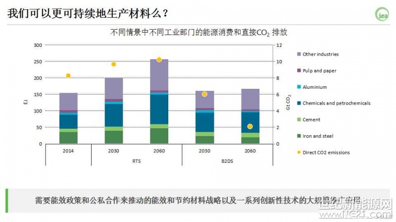 虽然工业部门在能效和低碳技术使用方面不断进步,但工业产量的增长必须进一步与能源消费和CO2排放“脱钩”。