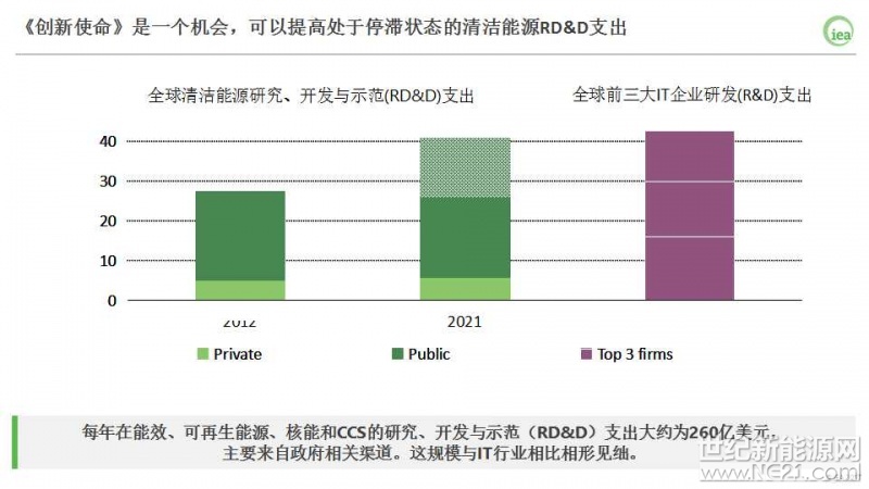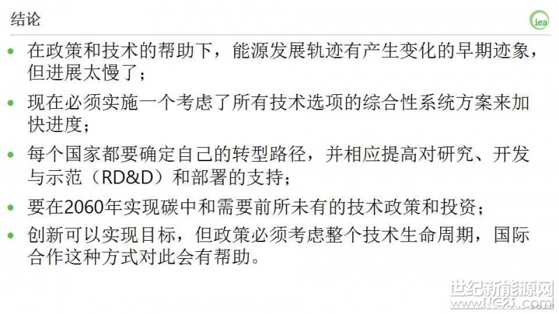每个国家的国情都有所不同,国际能源署鼓励世界各国根据本国国情来确定自身的转型路径,并相应提高对研究、开发与示范(RD&D)和部署的支持力度;