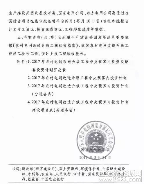 国家发改委下达新疆兵团2017年农网改造升级工程资金