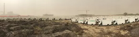 在深圳坪山坑梓地区一处废旧空地上,数百辆新能源物流车如士兵列队一般,密密麻麻排列。绝大多数车内空无一人,部分甚至尚未撕掉车内座椅的透明薄膜。两名司机躲在一辆车内,开大冷气闲聊。空地的入口处,长满了荒草。这一幕发生在六月初,一个工作日的上午。