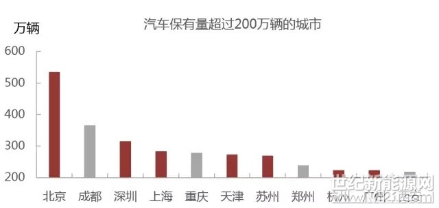 图15: 2015年中国汽车保有量超过200万辆的城市共有11个,其中东部沿海城市占7个