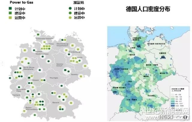 图21:德国首先在人口密度高的地区建设氢能的基础设施 并逐步向外延拓展