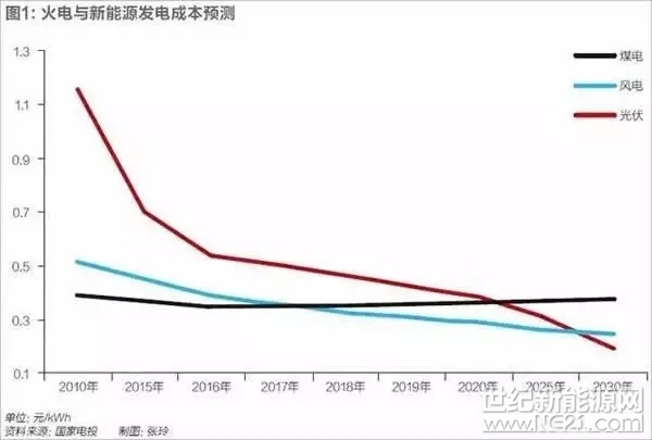 近年来,风、光发电的技术进步很快。单体风机的功率不断增大,适应低风速发电的风机已推广应用,太阳能电池和组件的转换效率持续改进。与此同时,新能源的发电成本也在快速下降。风电设备和光伏组件的价格,在过去的五年里下降幅度分别超过了20%和60%。美国风电长期购电协议价格已与化石能源发电达到同等水平,德国新增的新能源电力基本实现与传统能源平价。我国部分地区新能源的价格已经与煤电价格相当,预计到2030年,光伏发电成本可以达到0.2元/千瓦时,风电达到0.22元/千瓦时(见图表1)。