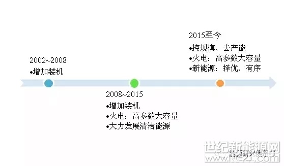 第三个阶段是2015年新一轮电力体制改革以后。新电改“放开两头”使围绕项目资源以及电量、电价的竞争加剧。同时,随着经济发展进入新常态,电力产能过剩问题日益凸显,国家密集出台了煤电“三个一批”、风险预警、淘汰落后产能等措施,涉及五大发电煤电项目4563万千瓦。新形势下五大发电集团从战略上提出以推进供给侧结构改革为主线,坚持以质量效益为中心,严控投资规模,加快结构调整,淘汰落后产能。在火电战略上延续了第二阶段高参数、大容量的投资方向。在新能源的战略上开始体现控规模的思想,提出新能源的发展要注重质量与效益的统一,要择优、有序发展新能源。新能源电源的布局综合考虑消纳问题。