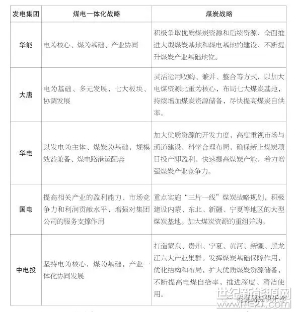 三、五大发电集团煤电一体化战略对比
