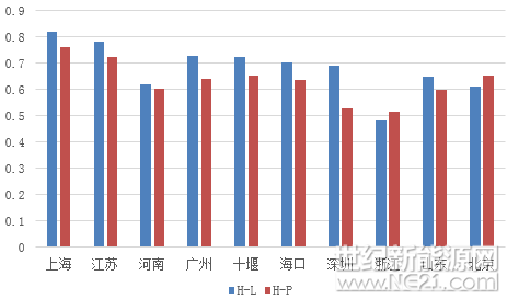 我搜集了全国个别省市的峰谷电价数据以及脱硫煤电价,计算出H-L以及H-P,如下图,蓝色代表峰谷价差H-P,红色代表余电自用套利H-P,可以看出全国大多数地区的峰谷套利更划算,比如上海、江苏、广州、深圳,也有些地区余电自用模式收益更好,比如北京、浙江。