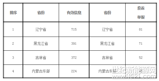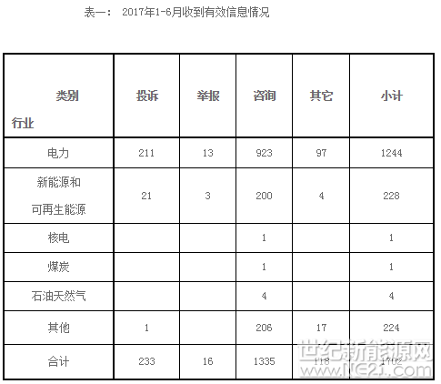 2017年1-6月,从12398能源监管热线收到的有效信息和投诉举报的数量来看,辽宁省均居首位。(详细情况见表二)
