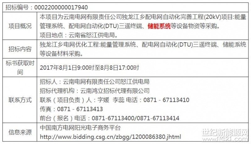 项目名称:独龙江乡配电网自动化完善工程(20kV)项目:能量管理系统、配电网自动化(DTU)三遥终端、储能系统等设备物资等采购项目