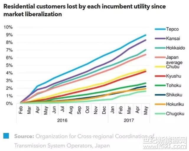 日本电力市场改革:日本当下进行的能源市场改革,正对市场竞争产生重大的影响。在2017年第一季度期间,现有电厂的发电量下降至63%,创历史新低。2017年,日本电力批发市场的月交易量创历史新高,而电力零售市场方面,日本6.7%的电力居民用户(即超过400万的用户)已申请更换他们的电力零售商。上述趋势都将进一步发展。