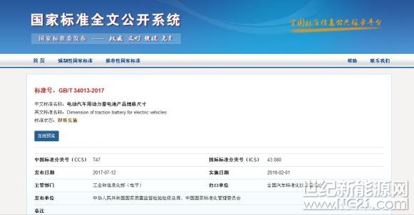 文件名称:GB/T34013-2017《电动汽车用动力蓄电池产品规格尺寸》;