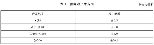 该标准对在同一尺寸范围的单体蓄电池、蓄电池模块和蓄电池标准箱,约定属于同一规格产品。尺寸范围随着产品尺寸减小而收紧,比如,尺寸在500毫米以上的产品,其尺寸范围限定在10毫米以内;而尺寸在10毫米以下的产品,尺寸范围限定在0.5毫米以内。值得注意的是,本标准所提及的单体电池高度均不含极柱高度。